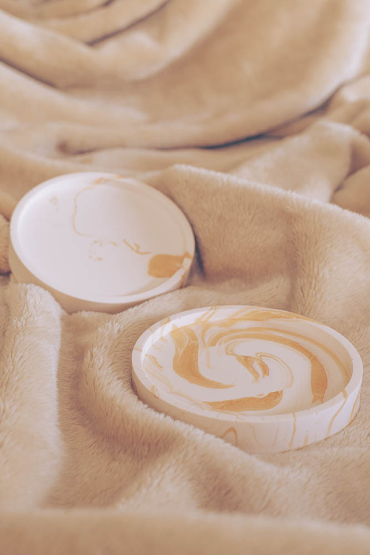 Here is our small decorative tray : made entirely by hand with gypsum powder and water resin (solvent-free) in our workshop in the South of France.