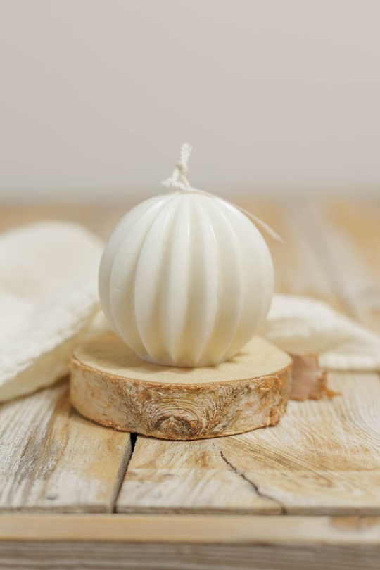 An unscented decorative Christmas bauble candle. With its delicate undulations, it will add softness and delicacy to your decor. Crafted by hand, this candle's sleek design will look great on a stand that contrasts its silky white.