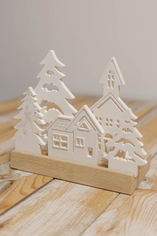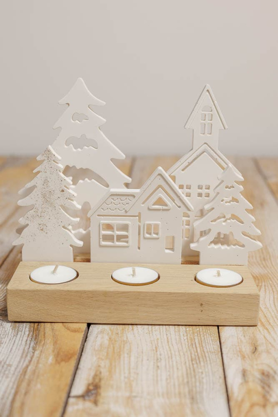 Discover our Christmas Village candle jar, in wood and gypsum. Entirely handmade in our workshop, with its oak base and molded gypsum houses. If you love Christmas villages, this candle jar is for you!