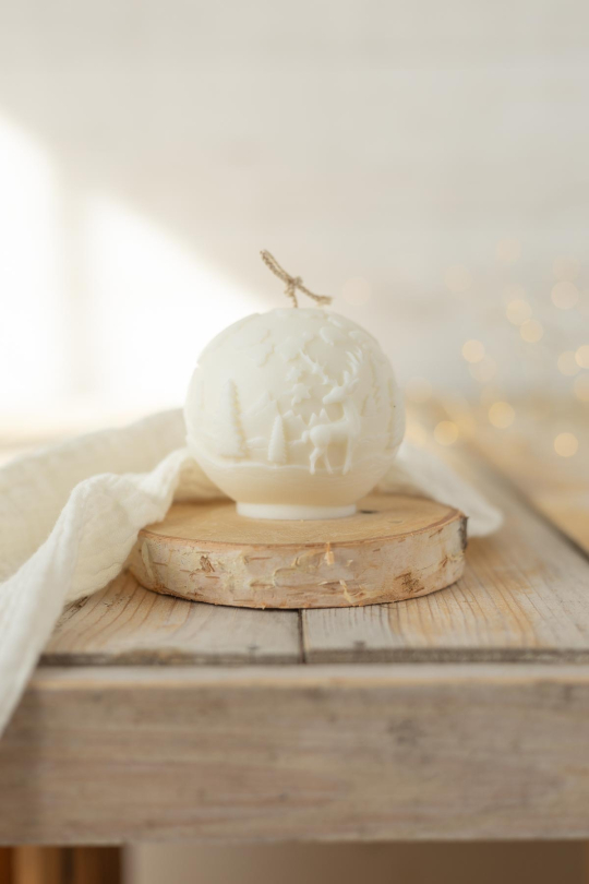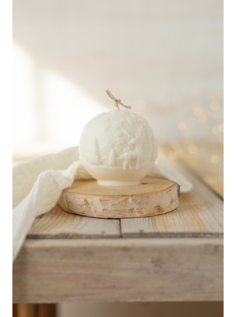 An unscented decorative Christmas bauble candle. With its delicate undulations, it will add softness and delicacy to your decor. Crafted by hand, this candle's sleek design will look great on a stand that contrasts its silky white.